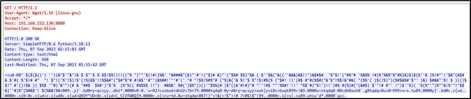 해당 CVE로 공격에 성공했다면 192.168.152.130에서 8080포트를 통해 파일을 다운받은 패킷이 존재할 것이고, 실제로 /tmp/ak1n234 파일을 발견했다.